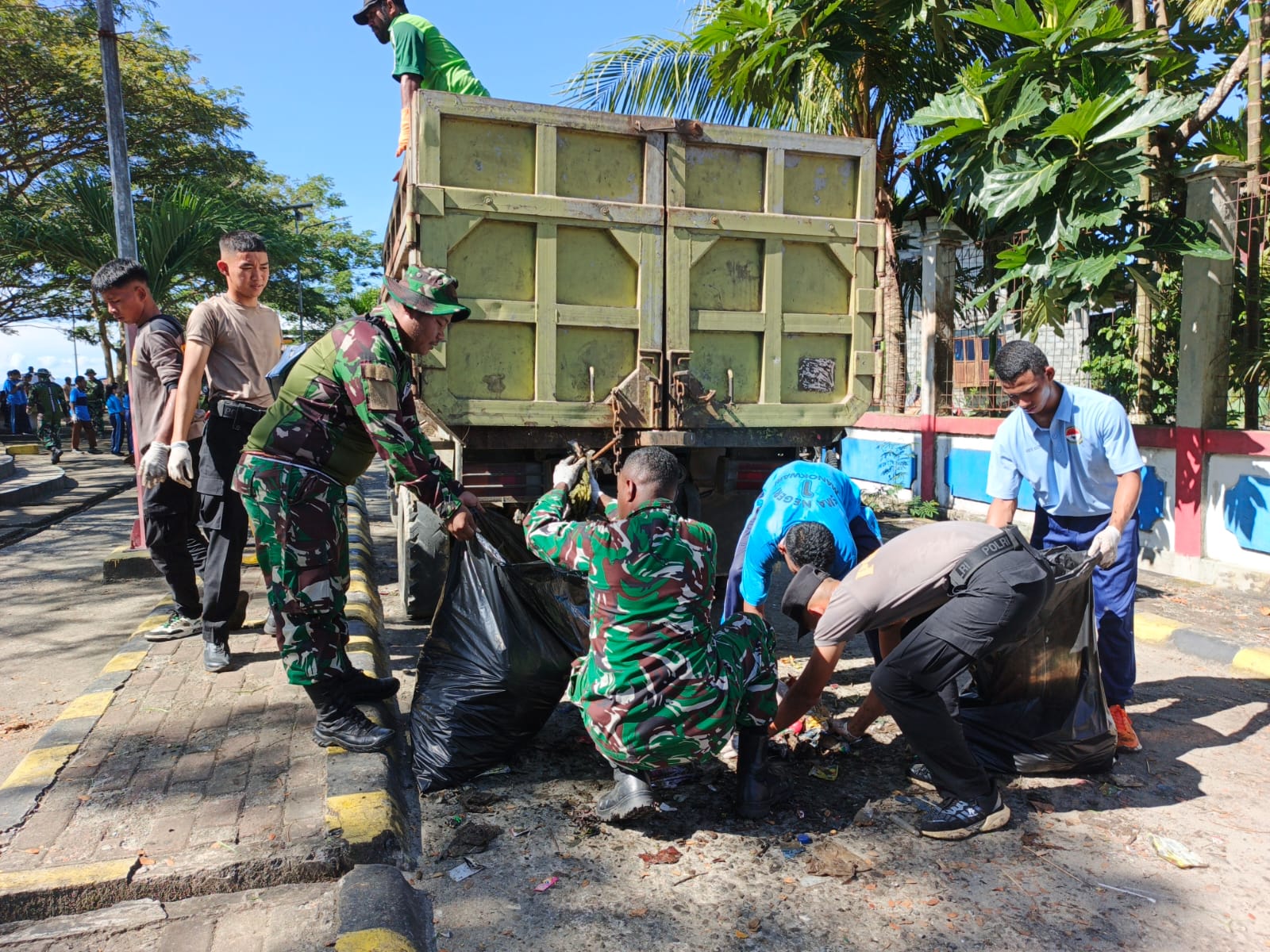 Kegiatan yang dipimpin langsung oleh Dandim 1801/Manokwari, Letkol Inf Davit Sutrisno Sirait, S.E., ini melibatkan ratusan personel TNI (Kodim 1801/Manokwari dan Fasharkan TNI AL), Polresta Manokwari, FKPPI, para pelajar dari SMA Taruna, SMA Negeri 1, SMA Yapis, hingga warga masyarakat Wirsi dan Arkuki. Kehadiran semua unsur ini menjadi bukti nyata sinergi TNI-Polri bersama rakyat untuk menjaga lingkungan tetap bersih dan lestari.