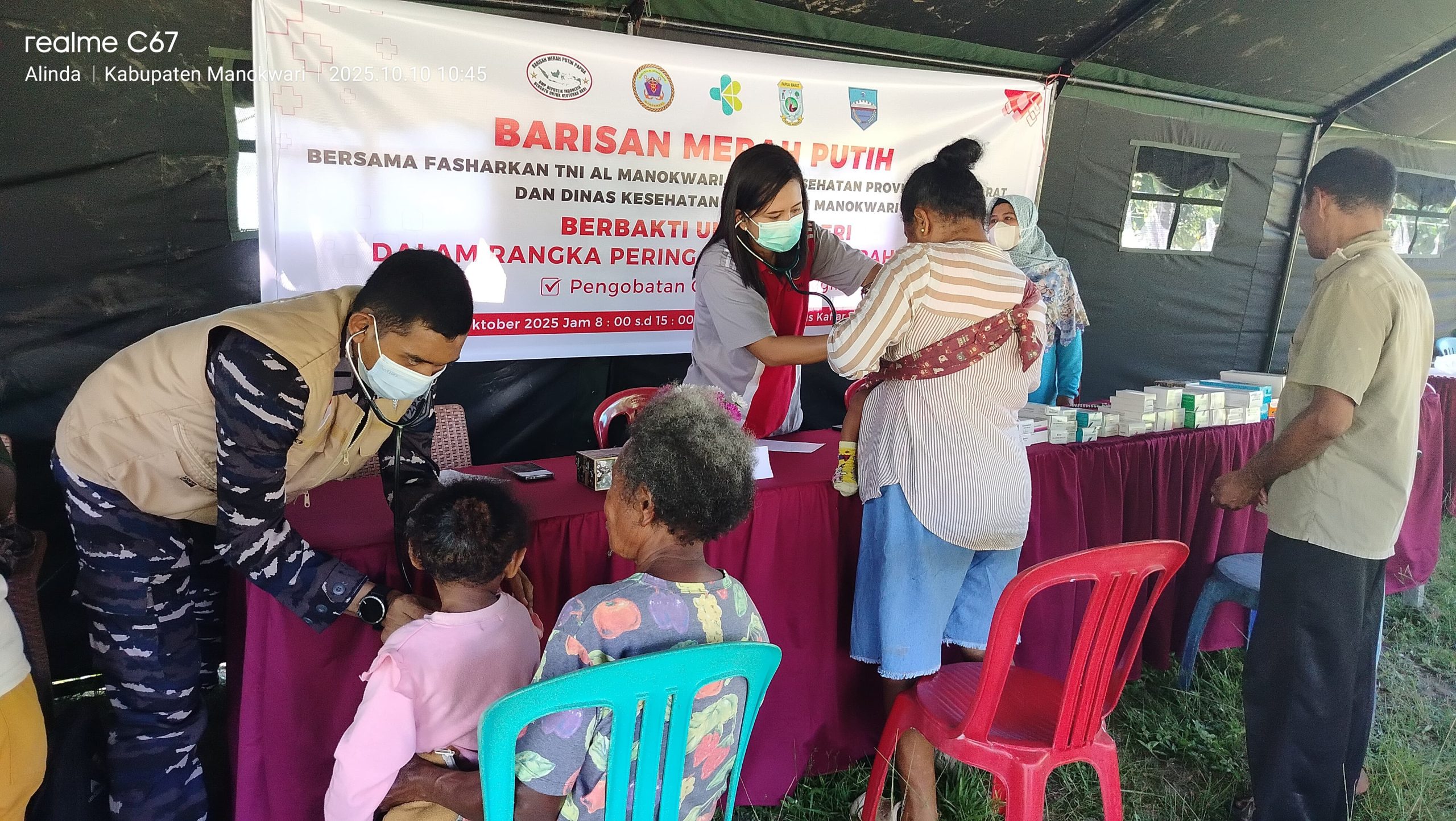 MANOKWARI, PapuaStar.com-Berbakti Untuk Negeri dalam rangka Peringatan Hari Sumpah Pemuda di Kampung Petrus Kafiar Beach Manokwari, Distrik Manokwari Barat, Kabupaten Manokwari, Provinsi Papua Barat telah dilaksanakan Kegiatan Bakti Sosial Barisan Merah Putih Bersama Fasharkan TNI AL Manokwari, Dinas Kesehatan Provinsi Papua Barat dan Dinas Kesehatan Kabupaten Manokwari menyambut Berbakti Untuk Negeri dalam rangka Peringatan Hari Sumpah Pemuda yang diselenggarakan oleh Barisan Merah Putih Papua Barat, di kampung Petrus Kafiar,Jumat (10/10/2025).