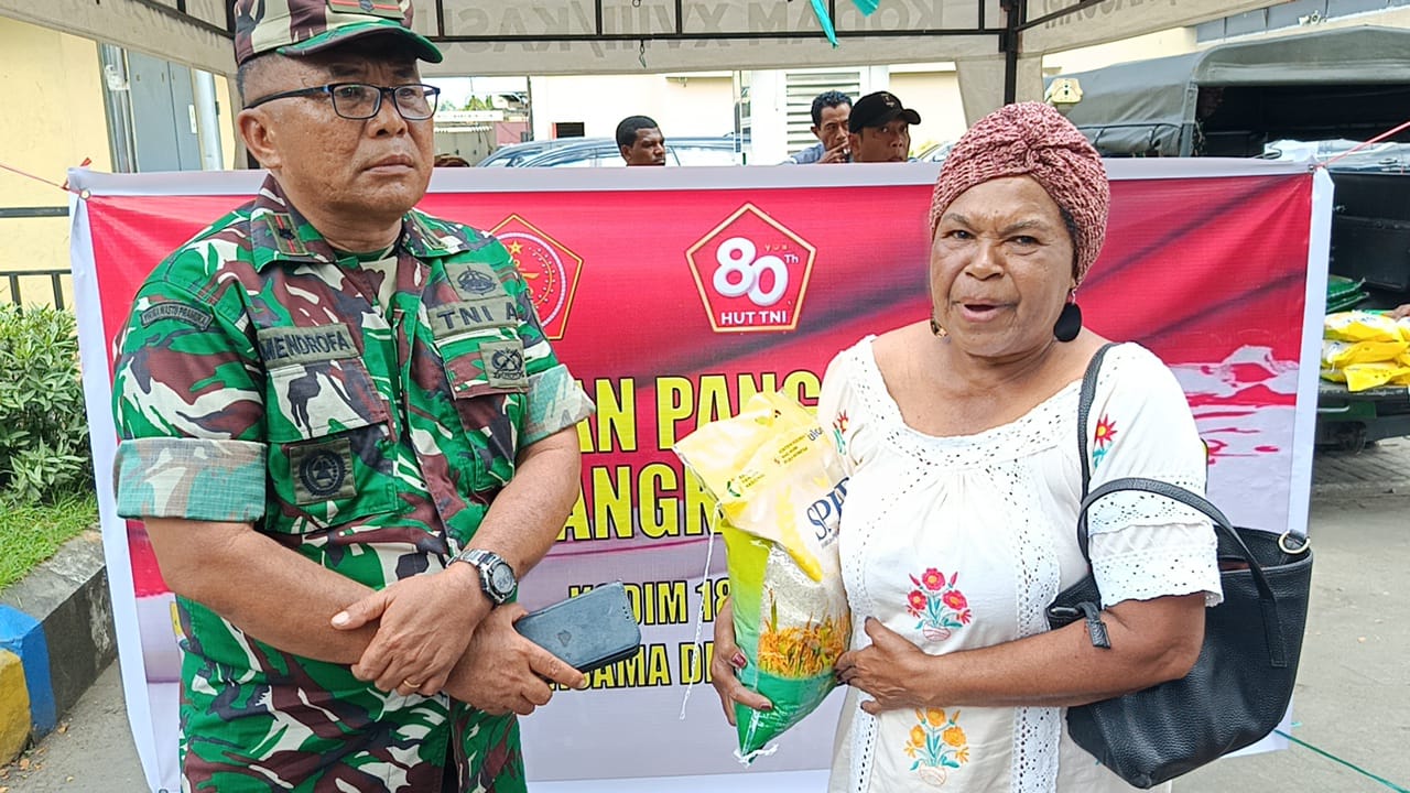MANOKWARI. PapuaStar.com– Dalam rangka memperingati Hari Ulang Tahun (HUT) TNI, Kodim 1801/Manokwari menggelar Gerakan Pangan Murah yang berlangsung di depan Hadi Mall, Jalan Yossudarso, Distrik Manokwari Barat, Kabupaten Manokwari, pada Kamis (11/9/2025).