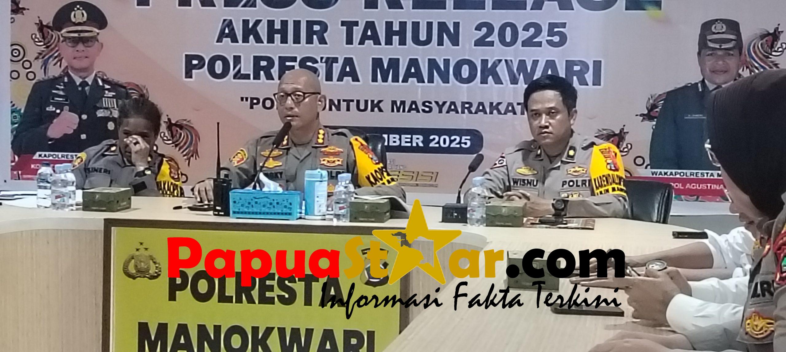 MANOKWARI, PapuaStar.com-Kapolresta Manokwari, Kombes Pol Ongky Isgunawan, saat memimpin press release akhir tahun, 29 personel Polresta Manokwari melakukan pelanggaran disiplin dan kode etik sepanjang tahun 2025. di Mapolresta Manokwari, Rabu (31/12/2025).