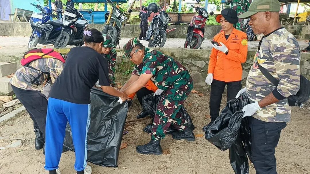MANOKWARI, PapuaStar.com-Kegiatan Karya Bakti dalam rangka Memeriakan hari juang Kartika TNI AD ke 80 dan HUT ke-9 Kodam XVIII/Ksr tahun 2025 dengan sasaran kegiatan pembersihan sampah-sampah disepanjang pasir pantai wisata Pasir Putih Distrik Manokwari Timur Kab. Manokwari, Rabu (10/12/2025).