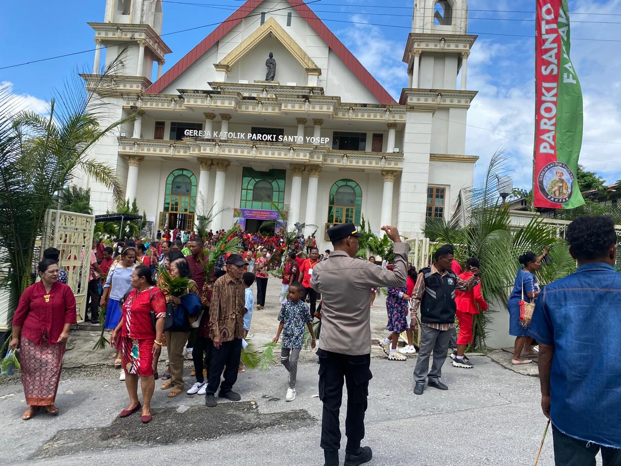 FAKFAK, PapuaStar.com – Sinergitas TNI–Polri kembali terlihat dalam pengamanan ibadah Minggu Palem di Gereja Katolik Paroki St. Yosep, Kabupaten Fakfak, Minggu (29/3/2026). Kehadiran aparat gabungan tersebut memastikan seluruh rangkaian ibadah berlangsung aman, tertib, dan kondusif.