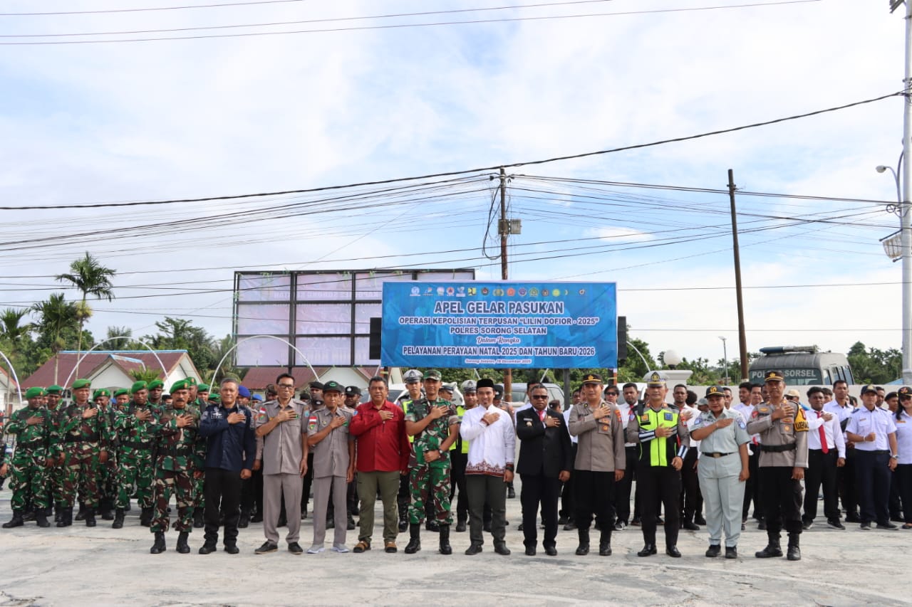 TEMINABUAN, PapuaStar.com- Dalam rangka pengamanan Perayaan Natal 2025 dan Tahun Baru 2026, Polres Sorong Selatan telah melaksanakan kegiatan Apel Gelar Pasukan Operasi Kepolisian Terpusat “Lilin Dofior-2025” yang dipimpin langsung oleh Wakil Bupati Sorong Selatan Yohan Bodori, S.Sos., M.Tr.AP., bertempat di Halaman Mapolres Sorong Selatan, Jumat (19/12/2025) pukul 16.00 Wit.